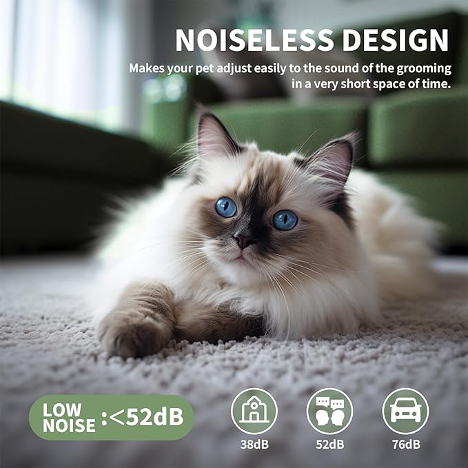 - 🐱【Whisper-Quiet Operation (52 dB)】We understand that peace and quiet matter for both you and your pup. With a groundbreaking low-noise design at just 52 decibels, grooming sessions become a breeze, making grooming a peaceful and enjoyable experience for both of you.
