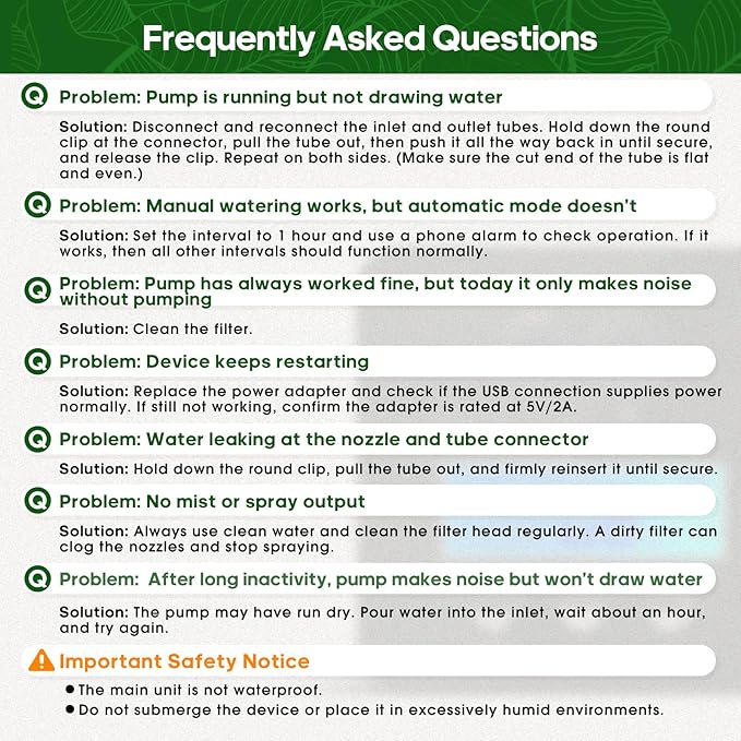 - 【Widely Used】Reptile misting system mainly used in pet, reptile, and other ecological rainforest atomization and humidification; reptile mister also be used to mist gardens, greenhouses, fan cooling, landscaping and so on.It also works as rainforest spray system,greenhouse sprayer,plant watering system,diy self drip irrigation kit and automatic plant waterer,etc.Great choice for Spraying/Humidifying/Cooling/Cleaning.