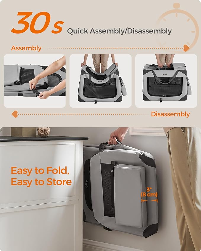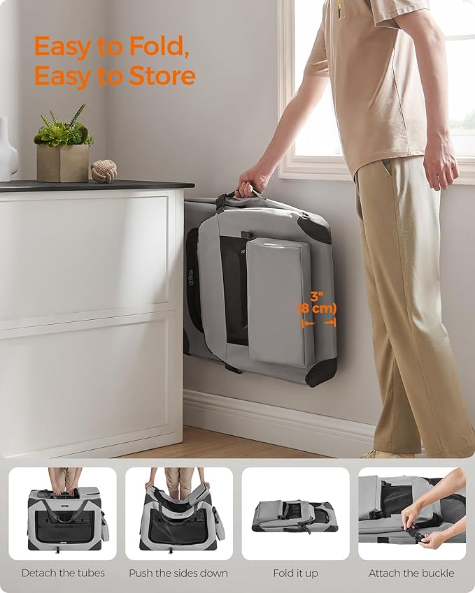 Feandrea 28 Inches Collapsible Soft Dog Crate, Portable Travel Dog Crate for Indoor and Outdoor Use, Dog Carrier Kennel with Safety Zippers, for Living Room, Car, Travelling, Smoke Gray UPDC070G02