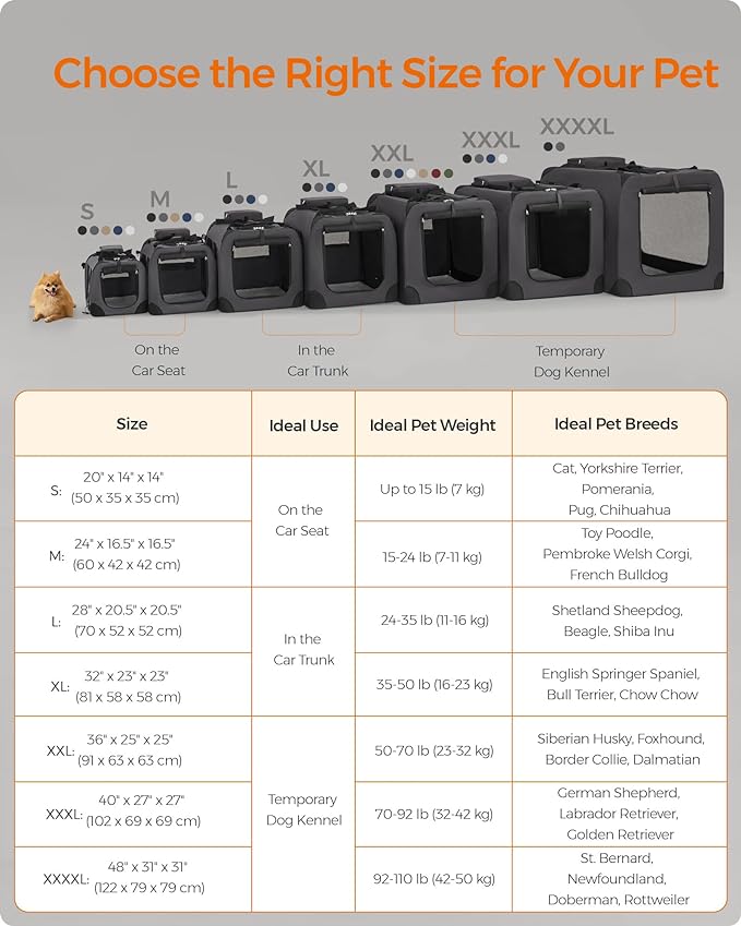 - ?�CHOOSE THE RIGHT SIZE?‘This 28" x 20.5" x 20.5" collapsible dog carrier is ideal for pets between 24-35 lb. Please read our tips on the pictures to measure your pet and choose the right size