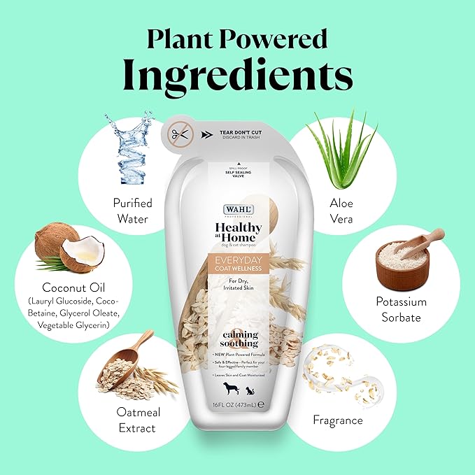 Wahl Professional Animal Healthy at Home Dog Shampoo - Plant Powered Grooming Shampoo - Everyday Coat Wellness