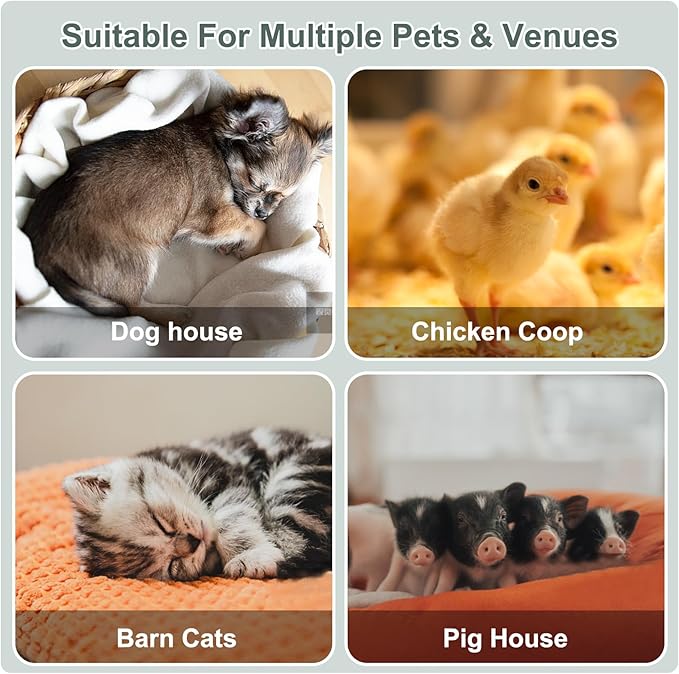 - WIDE USE: Chicken coop heater is ideal for all kinds of pet enclosures, including dog kennels, cat cages, chicken coops, rabbit hutches, etc., very versatile and practical