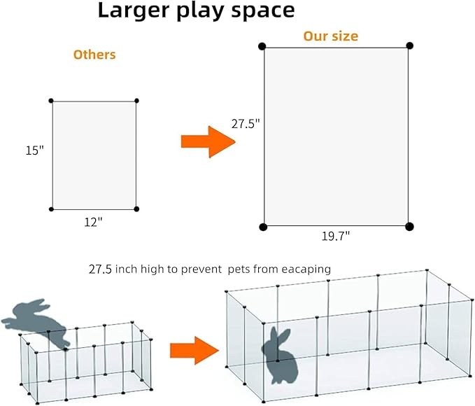 - FOR VARIOUS SMALL ANIMALS: Hedgehogs, hamsters, guinea pigs, or rabbits, they can all have fun in this fence. Easy to keep an eye on them from any angle.