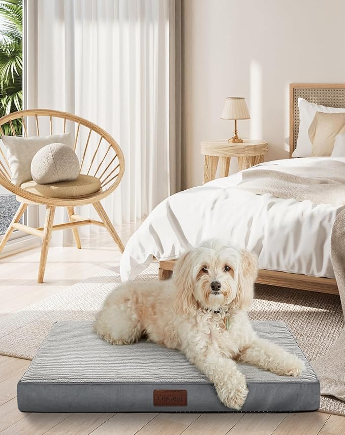 OhGeni 30 Inch Orthopedic Waterproof & Machine Washable Dog Bed with Egg Crate Foam Support, Non-Slip Bottom and Removable Pet Bed Cover for Extra Large, Large, Medium, Small Dogs (Gray)