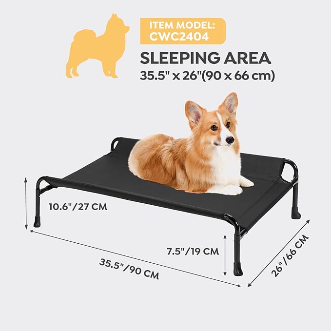 - Cooling Elevated Dog Bed: Featuring a breathable Teslin mesh mat, this bed promotes air circulation and water drainage, ensuring your pet stays cool and dry during humid summers. Its 7.5" elevation off the ground, keep your pet clean and joint health