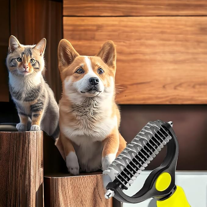 - EXCLUDE TANGLES AND KNOTS: This two-sided brush. One side 9 – teeth and other side with 17- teeth cat and dog undercoat rake for shedding exclude matted fur, tangles, and knots! It’s both sides of our comb for Dogs and Cats thin get rid of loose fur, flakes, and dirt.