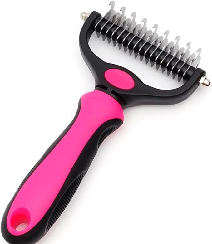 - EASY TO USE & SAFE FOR PETS: The blades rake brush for dogs and cats are rounded to gently massage your pet while removing loos hair. Made with rubber handle and stainless steel on brush sides. Its convenient grooming tool to use along coated breed.