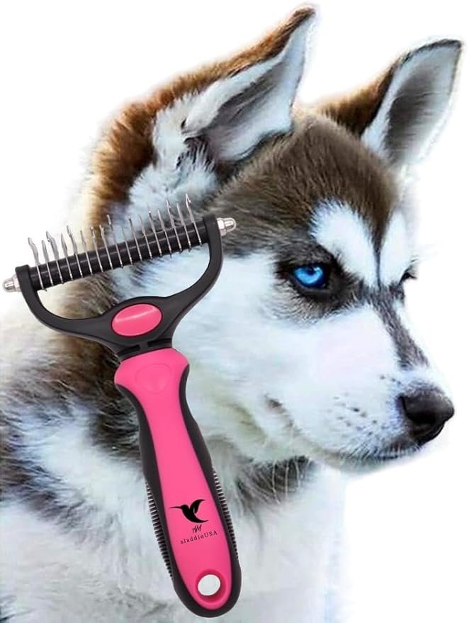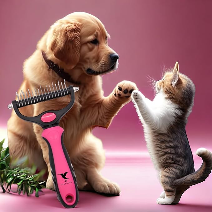 - EXCLUDE TANGLES AND KNOTS: This two-sided brush. One side 9 – teeth and other side with 17- teeth cat and dog undercoat rake for shedding exclude matted fur, tangles, and knots! It’s both sides of our comb for Dogs and Cats thin get rid of loose fur, flakes, and dirt.