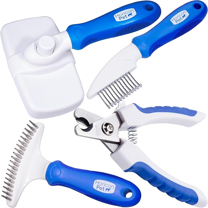 - Quickly and easily maintain your pet's coat and nails with our four tool, all in one, grooming set! Deshedding, conditioning, mat removal, and nail care all in one set!