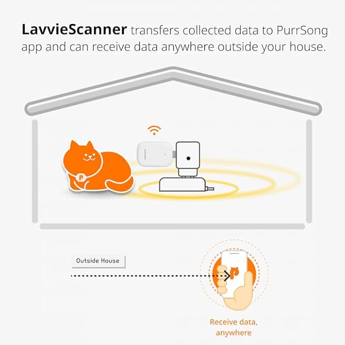 - 😸LavvieScanner Keeps You Connected: When your cat is away from you, LavvieScanner (data transmission device) comes to the rescue. If LavvieTAG is detected within an 8-meter radius of where LavvieScanner is placed, it will transmit activity data via Wi-Fi in four-hour intervals.