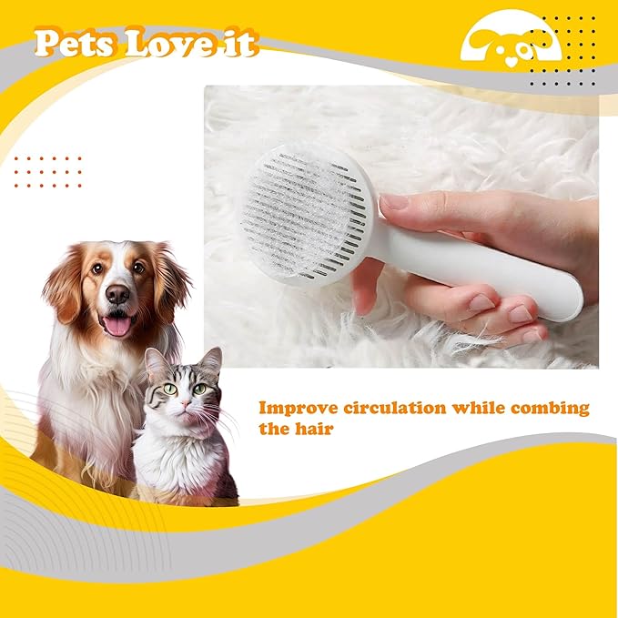 - Experience the ease of PetNBeyond's Self-Cleaning Grooming Brush, a user-friendly tool designed to save you time and effort during shedding season. With a simple click of the cleaning button, the brush automatically releases collected shed hair, allowing you to effortlessly push out brushed hair from the bristles. Ideal for both cats and dogs, this grooming brush guarantees a hassle-free grooming experience for you and your furry companions.