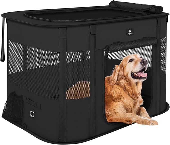 - 【Spacious & Comfort】Dog cage consists of 4 mesh side panels and a half mesh top, well ventilated; The playpen tent promotes comfort and security, providing dogs and cats a safe enclosed space for lounge and play. The pet playpen is also a ideal present as Christmas gifts for dog cat lovers