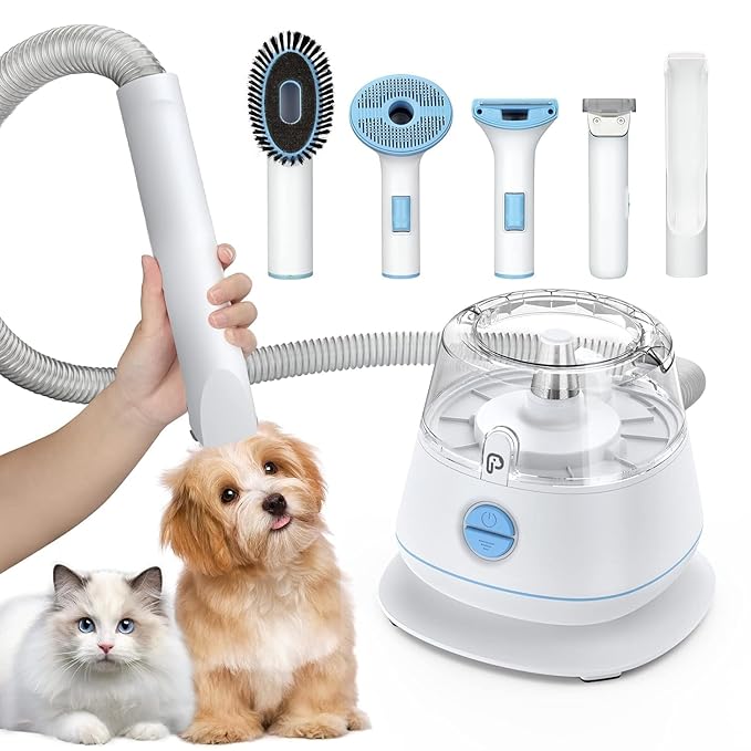 - SAVE TIME AND MONEY - Instead of waiting for a long time for a pet grooming kit appointment, the pet grooming vacuum cleaner combines hair trimming, conditioning and cleaning in one, with five different accessories. When your beloved pet is in need of grooming, it's faster and easier to get the job done with at-home pet store care. It will save you tons of money and valuable time!