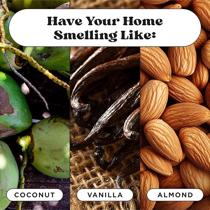 - Warm, Cozy Aromatherapy: From the makers of poopourri! The relaxing scent of Coconut, Vanilla & Almond creates a cozy and fresh ambiance, making your home feel warm and completely dog-funk-free.