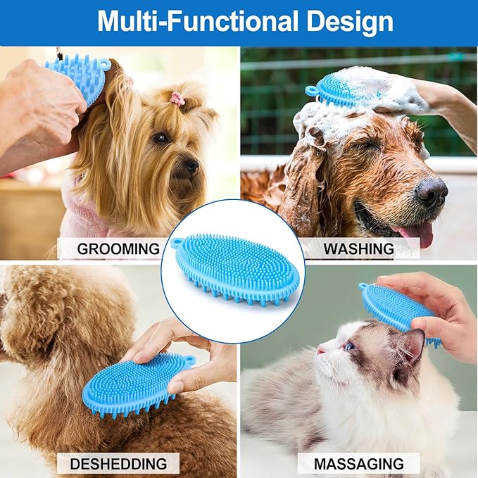 - PROFESSIONAL PET BATHING BRUSH: Our pet grooming brushes are made of high quality rubber material, soft and comfortable, which can effectively remove dirt and dead skin cells from your pet's coat without causing discomfort to your pet.