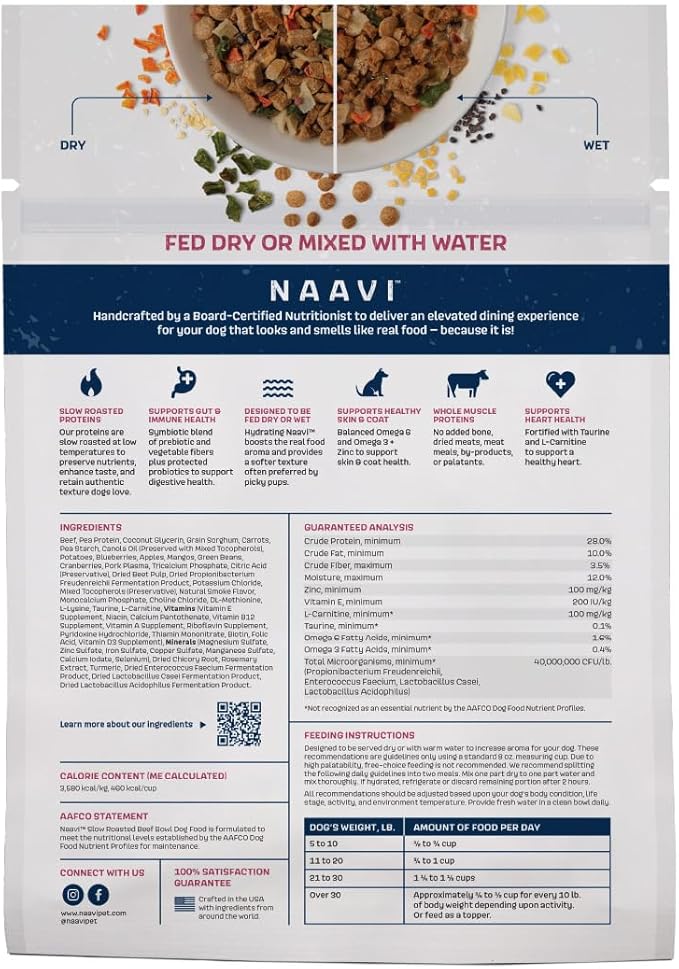 - Includes (2) 6oz bags of NAAVI's Beef recipe