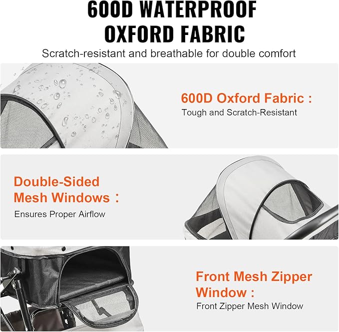 - 600D Oxford Fabric and Mesh Windows: The sturdy 600D Oxford fabric can withstand pet nibbling, keeping the cat stroller in pristine condition. Multiple breathable mesh windows ensure unhindered airflow, providing your pet with a wide field of vision. The spacious carriage basket adds to your pet's comfort.