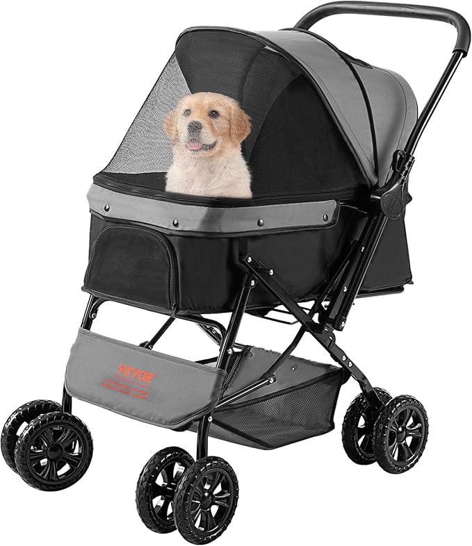 VEVOR Dog Cat Stroller for Medium Small Dogs Cats Up to 44lbs, 4 Wheel Foldable Pet Stroller with Reversible Handle, Portable Lightweigh Puppy Doggy Doggie Jogging Stroller with Storage Basket