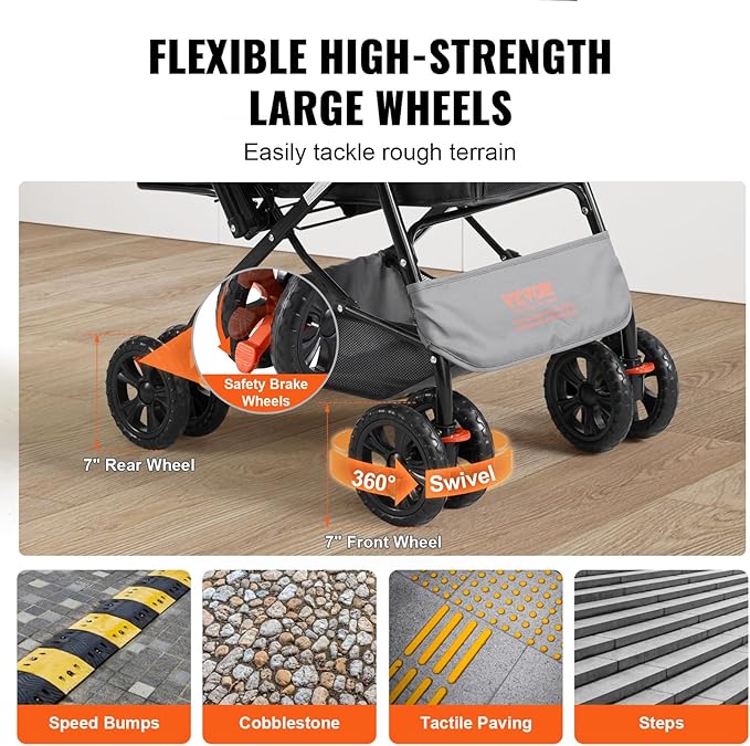 - Flexible Large Wheels: This dog stroller has EVA large wheels (7" front, 7" rear), ensuring a comfortable ride for your pet on any path. The 360° swivel front wheels provide easy maneuvering, and the reliable single-wheel brake system ensures safety. Plus, the handy cup holder and the spacious storage basket make every outing with your furry friend enjoyable and convenient.