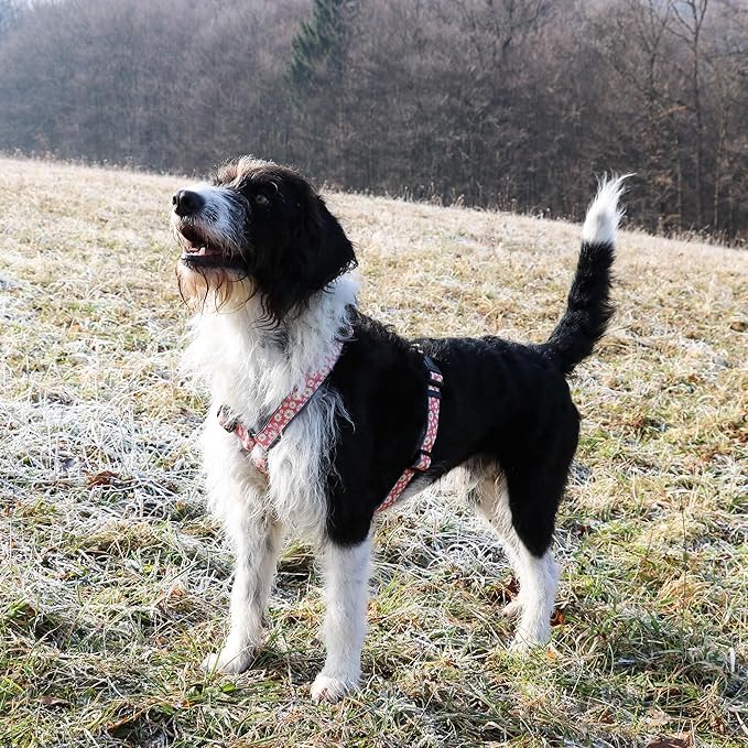 - Easy adjustable and versatile dog harness with 3 quick-release buckles. The four adjustable straps, 2 for the shoulders and 2 for the chest ensure a flexible, secure and comfortable fit. Available in sizes S, M and L. Prior to placing your order, we recommend measuring your dog referring to the size recommendations provided in the description for specific breeds.