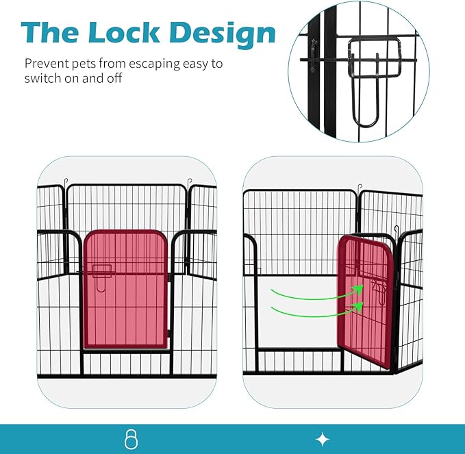 - 🐕【Easy to Install】This dog playpen is a must have for any dog lovers. Quality of our pet playpen constructed with simple assembly instructions will set up in minutes. Our puppy playpen assembles and comes down quickly which is very important as you don't want to be wasting tons of time while enjoying time off. Dog Playpen Dog Pen Dog Fence Puppy Playpen