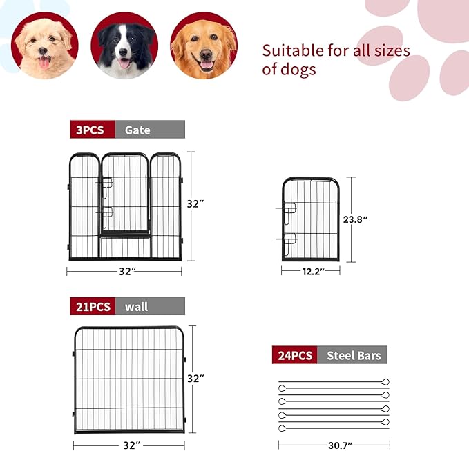 - 🐕【High Quality & Durable Material】Our dog playpen constructed from sturdy heavy duty rust resistant metal for increased longevity and durability. Durable puppy playpen great for indoor or outdoor use. Our pet playpen is your best choice! dog playpen puppy playpen pet playpen