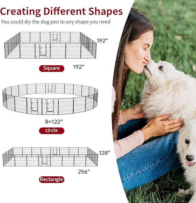 - 🐕【Change to Multiple Shape Easily】Our puppy playpen design allows for multiple shape configurations to meet your needs, such as the shape of rectangle, square or octagon. This dog playpen will be ideal for any pet lover. If you have any questions about our pet playpen, please feel free to contact us. Dog Playpen Dog Pen Dog Fence Puppy Playpen