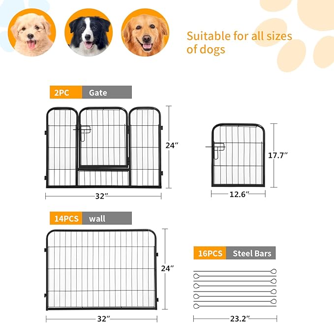 - 🐕【High Quality & Durable Material】Our dog playpen constructed from sturdy heavy duty rust resistant metal for increased longevity and durability. Durable puppy playpen great for indoor or outdoor use. Our pet playpen is your best choice! dog playpen puppy playpen pet playpen