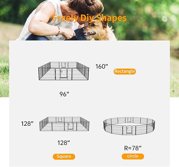 - 🐕【Change to Multiple Shape Easily】Our puppy playpen design allows for multiple shape configurations to meet your needs, such as the shape of rectangle, square or octagon. This dog playpen will be ideal for any pet lover. If you have any questions about our pet playpen, please feel free to contact us. Dog Playpen Dog Pen Dog Fence Puppy Playpen