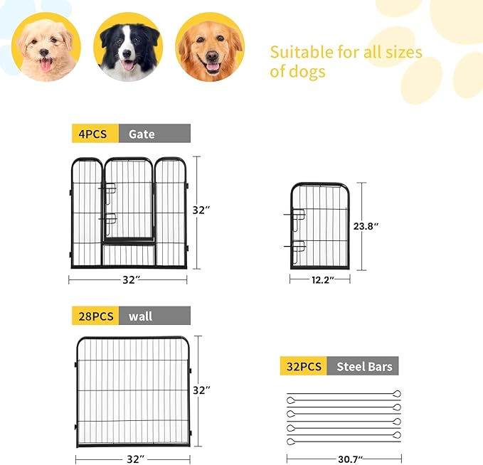 - 🐕【High Quality & Durable Material】Our dog playpen constructed from sturdy heavy duty rust resistant metal for increased longevity and durability. Durable puppy playpen great for indoor or outdoor use. Our pet playpen is your best choice! dog playpen puppy playpen pet playpen