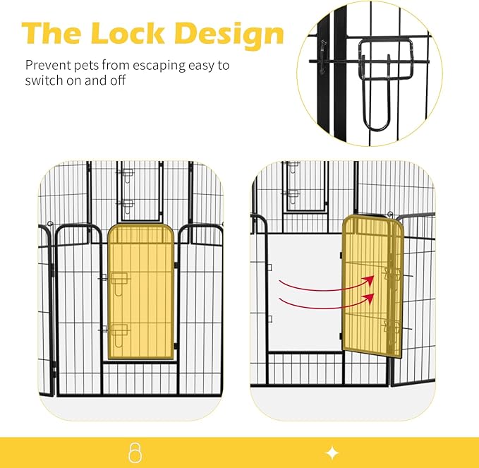 - 🐕【Easy to Install】This dog playpen is a must have for any dog lovers. Quality of our pet playpen constructed with simple assembly instructions will set up in minutes. Our puppy playpen assembles and comes down quickly which is very important as you don't want to be wasting tons of time while enjoying time off. Dog Playpen Dog Pen Dog Fence Puppy Playpen