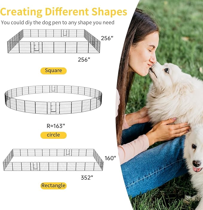 - 🐕【Change to Multiple Shape Easily】Our puppy playpen design allows for multiple shape configurations to meet your needs, such as the shape of rectangle, square or octagon. This dog playpen will be ideal for any pet lover. If you have any questions about our pet playpen, please feel free to contact us. Dog Playpen Dog Pen Dog Fence Puppy Playpen