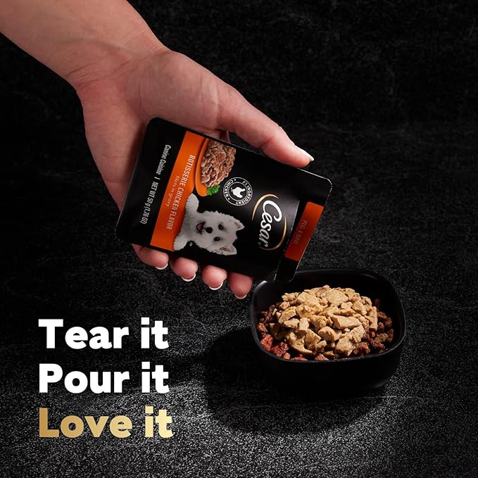 - Chicken is the #1 Ingredient: CESAR Rotisserie Chicken Flavor Mini-Pouches have chicken as the #1 ingredient so your dog gets a flavor they know and love