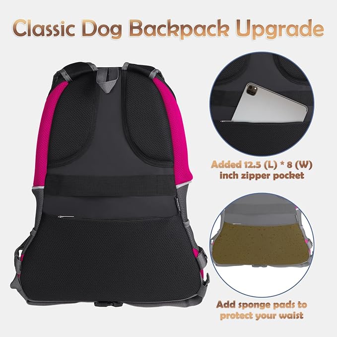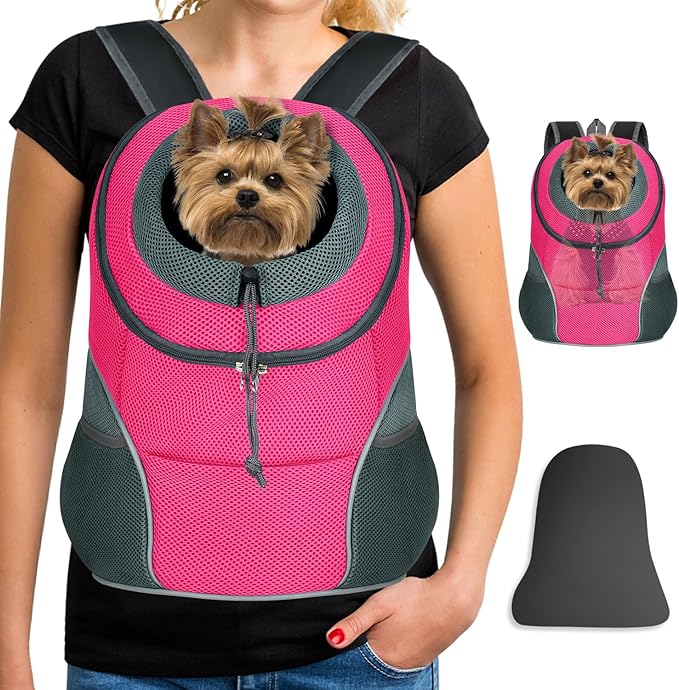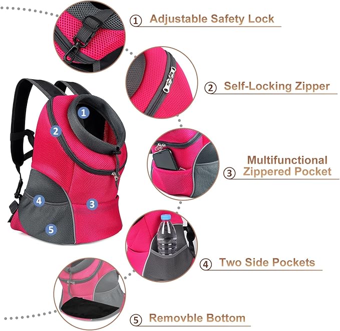 YUDODO Pet Dog Backpack Carrier Small Dog Front Carrier Pack Reflective Head Out Motorcycle Puppy Carrying Bag Backpack for Small Medium Dogs Cats Rabbits Outdoor Travel Hiking Cycling (L, Pink)