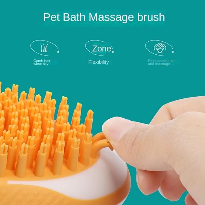 - 1.This pet bath massage brush comes with a locking switch that allows you to easily rotate and add bath bombs. It has 0.511811 inches comb teeth length, perfect for combing dry hair.