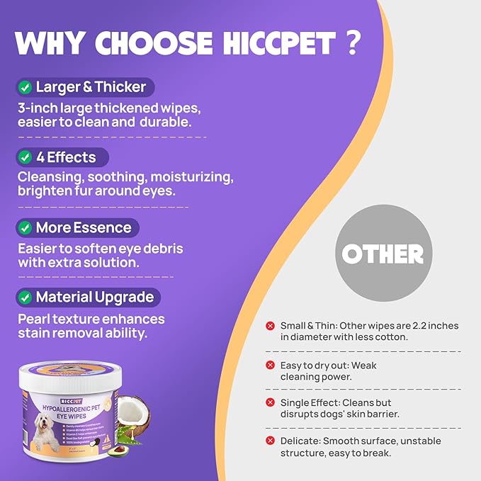 - 【Hypoallergenic and Gentle】HICC Pet Sterile Eye Wash Pads are specially formulated, mild and non-irritating, suitable for pets of all ages, even sensitive skin. Free of alcohol, optical brighteners, Dyes and antibiotics. LICK SAFE.
