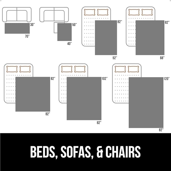 - BEDS, SOFAS, AND CHAIRS: blanket measures 40” x 50”; available in many sizes for all spaces; sizing aligns with bed and sofa sizing for a perfect fit; machine wash and dry