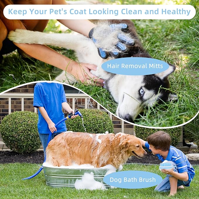- Care about Pet Fur Health: The set includes hair removal mitts and dog bath brush to help effectively remove loose fur and reduce shedding. With these grooming tools, you can keep your pet's coat looking clean and healthy.