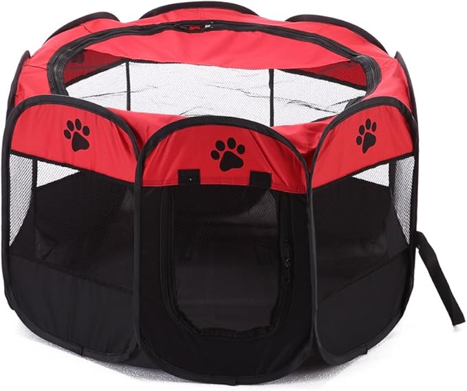Portable Pet Playpen, 28.3" Foldable Dog Playpen for Dogie Kitten Rabbit, Exercise Playpen Tent Indoor/Outdoor Use (red)