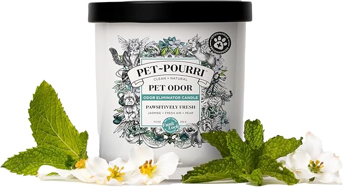 Pet-Pourri Pawsitively Fresh Pet Odor Bundle - 16 Fl Oz Air and Fabric Freshener Spray and 7.5 Oz Candle – Jasmine, Fresh Air and Pear