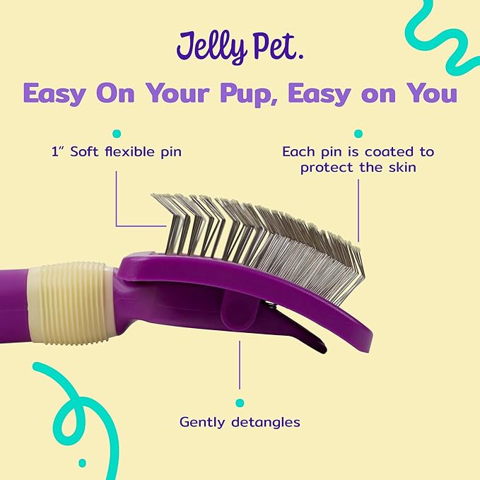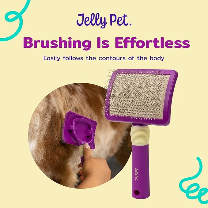 Jelly Pet Pivoting Slicker Brush, Brush Head Moves, Soft Pin Slicker, Protects Skin, Prevents Irritation, Effortless Brushing of Shedding Dogs, Detangles and Desheds