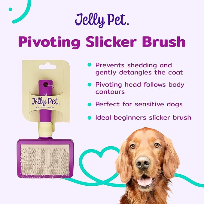 Jelly Pet Pivoting Slicker Brush, Brush Head Moves, Soft Pin Slicker, Protects Skin, Prevents Irritation, Effortless Brushing of Shedding Dogs, Detangles and Desheds