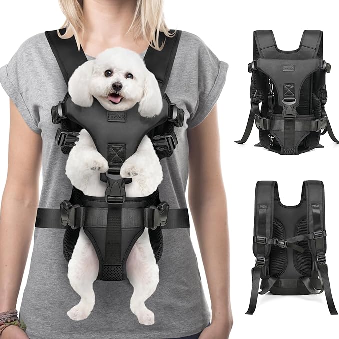 YUDODO Dog Backpack Carrier with Adjustable Safety Buckle Easy-fit Pet Dog Front Carrier for Small Medium Dog Legs Out Dog Chest Carrier for Traveling Walking Cycling (S Black)