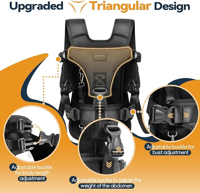 - New Product Upgrade: YUDODO dog backpack features a unique triangular sponge padding design, offering superior support to prevent your pet from leaning forward. With seven adjustable buckles, you can tailor the fit to your pet's length, chest, and waist, providing a secure and comfortable experience.This innovative design also eliminates zippers, ensuring your pet's fur won't get caught