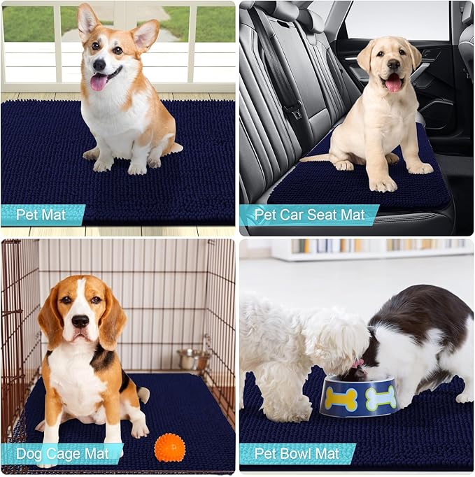 OLANLY Dog Door Mat for Muddy Paws 59x35, Absorbs Moisture and Dirt, Absorbent Non-Slip Washable Mat, Quick Dry Chenille, Mud Mat for Dogs, Entry Indoor Door Mat for Inside Floor, Navy Blue