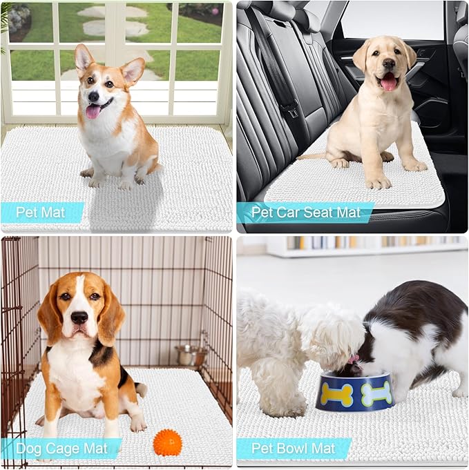 OLANLY Dog Door Mat for Muddy Paws 70x24, Absorbs Moisture and Dirt, Absorbent Non-Slip Washable Mat, Quick Dry Chenille, Mud Mat for Dogs, Entry Indoor Door Mat for Inside Floor, White