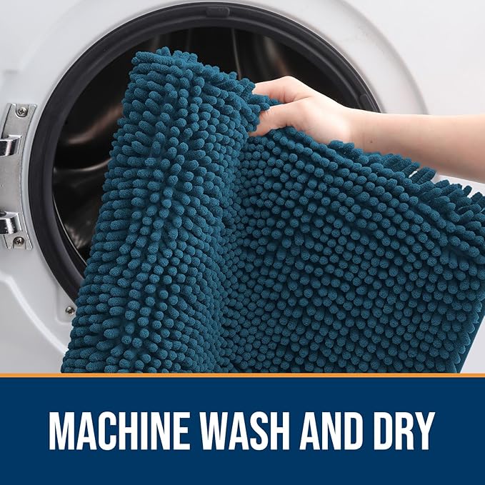 OLANLY Dog Door Mat for Muddy Paws 48x30, Absorbs Moisture and Dirt, Absorbent Non-Slip Washable Mat, Quick Dry Chenille, Mud Mat for Dogs, Entry Indoor Door Mat for Inside Floor, Atlantic Blue