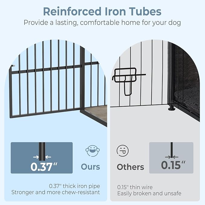 - ?�Sturdy and Chew-Resistant?‘This xl dog cage furniture is made of premium particle board and iron pipe, which is stronger and more chewy; It will accompany your dog throughout the growing stages; It's an ideal gift for your dog