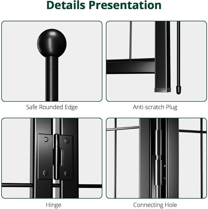- Escape-Proof Design: The 32" high dog pen prevents escape attempts. The gravity automatic invisible door lock stops pets from opening the door on their own. Leave your pet in a safe area without worrying about them escaping