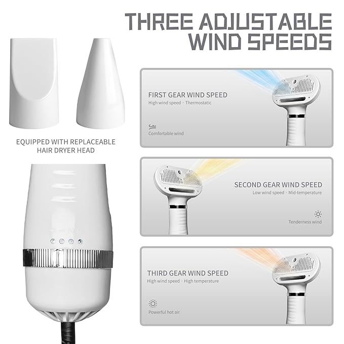 - Portable and Convenient: With its compact design, this pet hair dryer is perfect for home grooming or on-the-go use. Its lightweight and portable nature make it easy to store and travel with, ensuring your pet can enjoy a professional grooming experience anytime, anywhere.